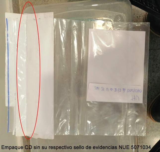 El perito criminalístico señaló además, que la cadena de custodia se rompió y que no existe constancia de dónde estuvieron los cd’s por varios meses y que incluso, el envase de evidencia que debía estar sellado en todo momento se encontraba sin sellos y que cualquiera podría haber manipulado los discos, los podría haber cambiado o reemplazado, sin que haya quedado constancia de quién los utilizó o manipuló.